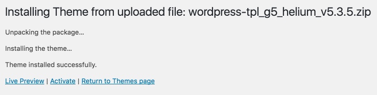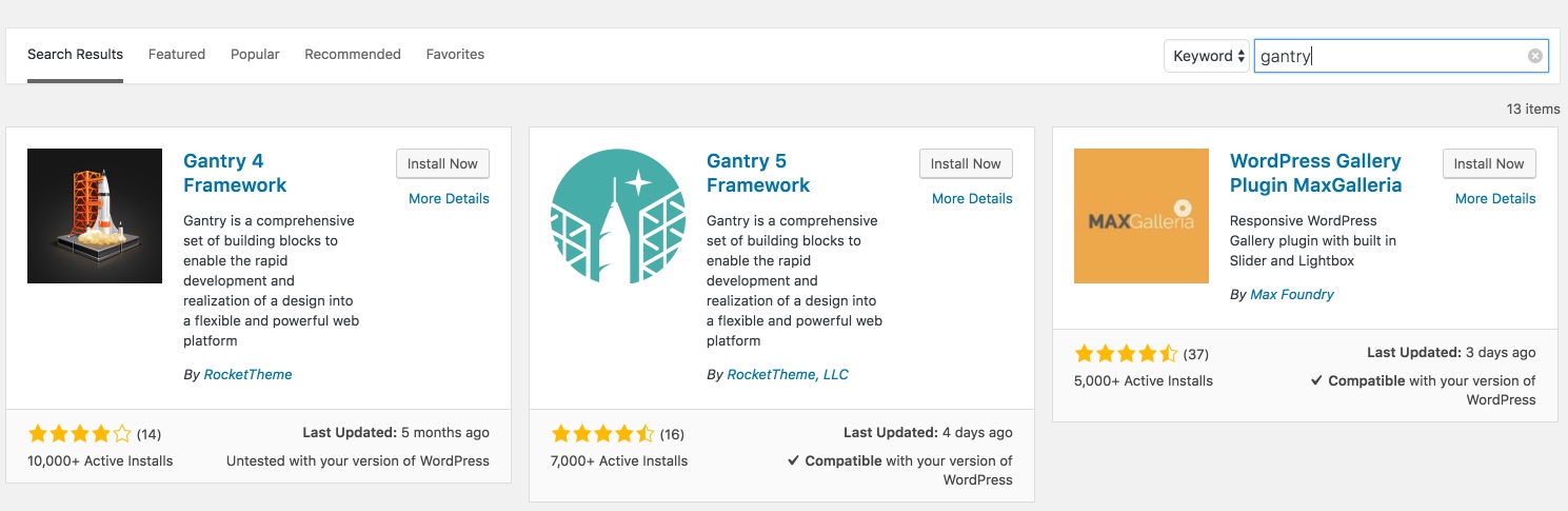 El proceso de instalación es exactamente el mismo para cada uno de estos. La única diferencia es el archivo que estás instalando. El componente Gantry 5 debe instalarse antes que un tema Gantry.